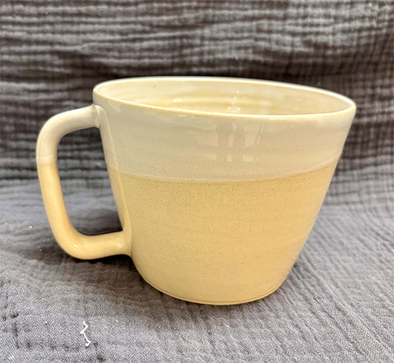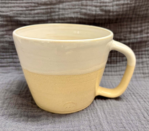 Tasse à Thé en grès naturel recouvert d’un émail blanc et d’un émail transparent.
